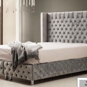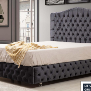 Lit Double Coffre En Velours – TOKYO GRIS