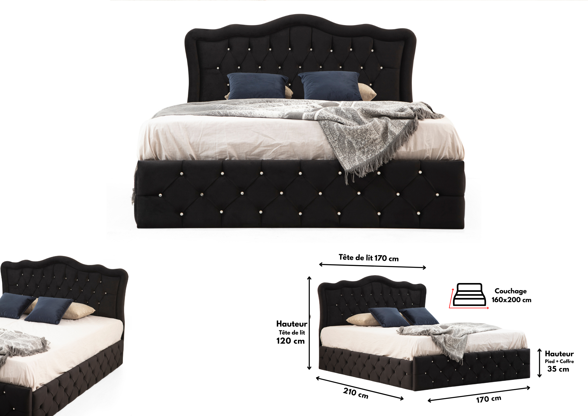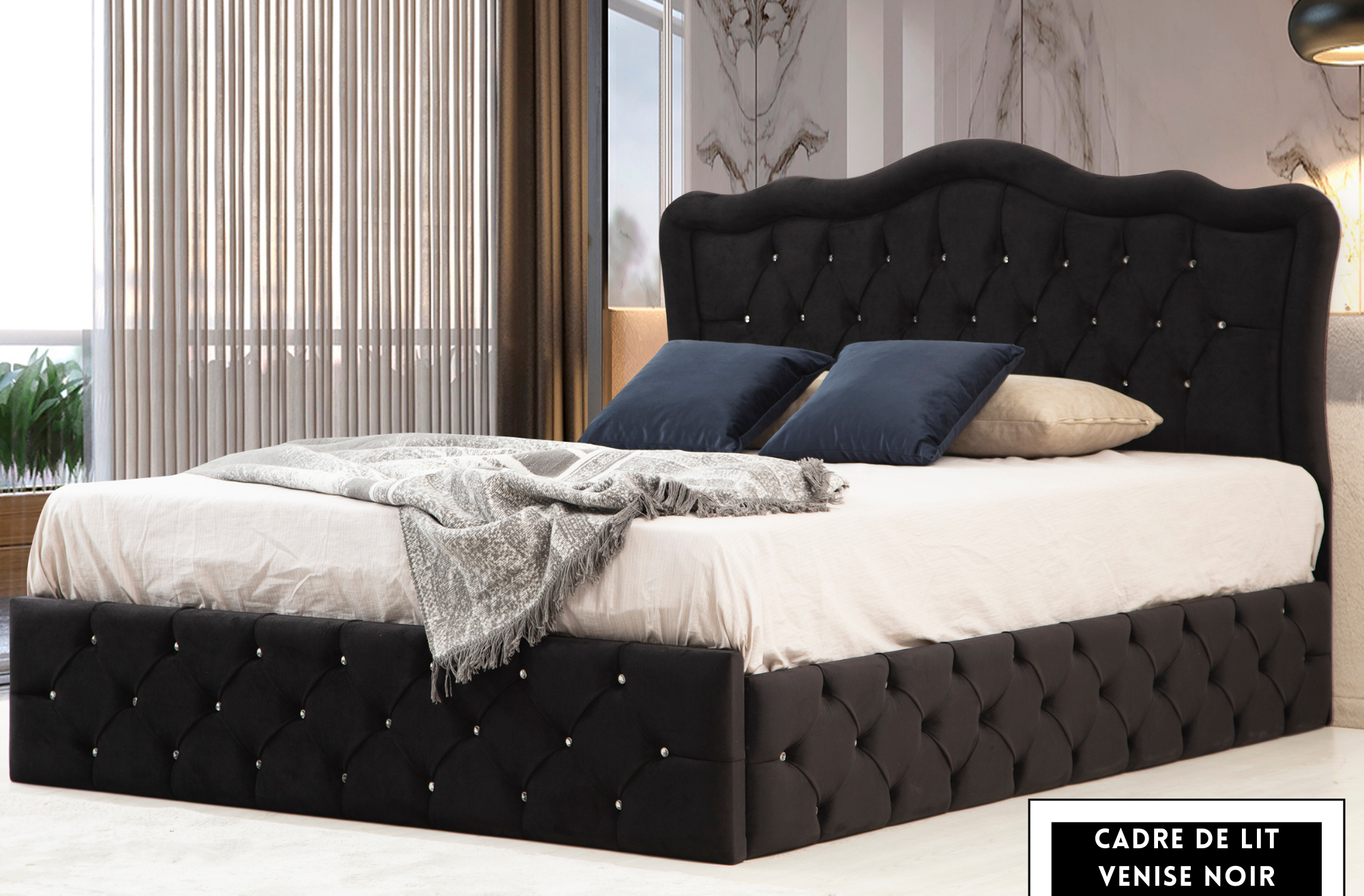 Cadre De Lit Capitonné 2 Places En Velours – VENISE NOIR