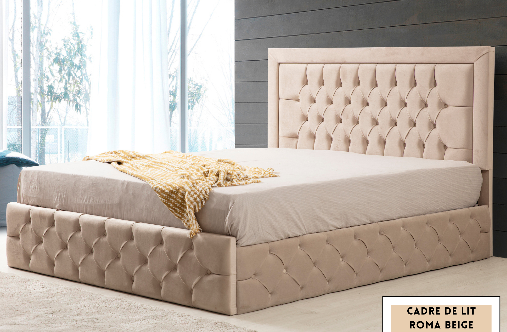 Cadre De Lit En Velours Capitonné 2 Places – ROMA BEIGE