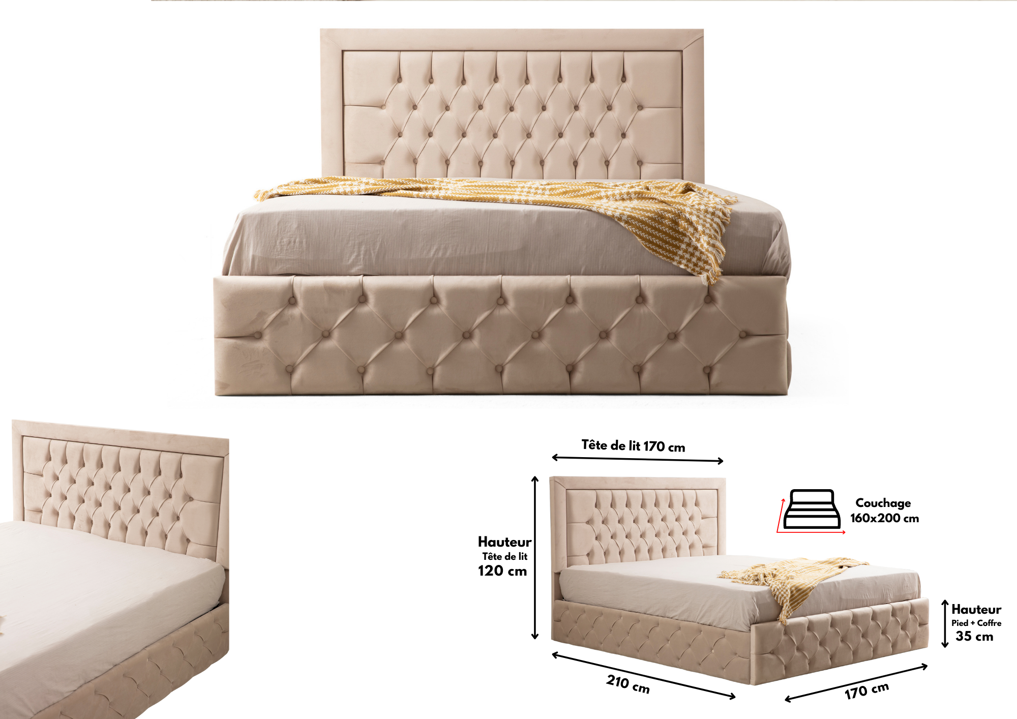 Be the first to review “Cadre De Lit En Velours Capitonné 2 Places – ROMA BEIGE”
